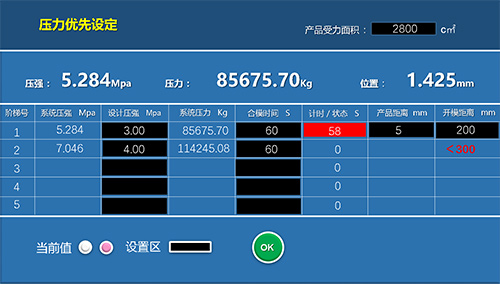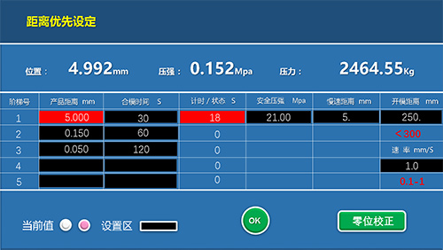 JYFC-400TA全自动精密压机通过PLC触摸屏软件设定,经伺服电机修正自动控制。达到压力控制精度<0.05Mpa;位移定位精度0.025mm。根据产品的面积配合压力、距离和时间,分段设定连续阶梯。可设定5个连续阶梯。实现全自动伺服控制。